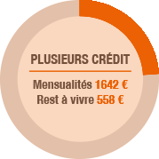 Durée minimum et maximum des prêts par les organismes bancaires référencés: entre 1 an et 25 ans. Seuls nos partenaires bancaires sont habilités à calculer le Le TAEG (Taux Annuel Effectif Global). Le TAEG est généralement constitué des éléments suivants: les frais de dossier bancaires, la commission de l’IOB (Intermédiaire en Opérations Bancaires), les frais d’acte notarié et d’inscription hypothécaire. A noter que le TAEG calculé par la banque ne peut pas dépasser le taux d’usure en vigueur au moment de l’accord délivré par la banque. Voici un exemple de financement accordés par les organismes bancaires référencés: Mr et Mme X, retraités, sont propriétaires d’un bien d’une valeur de 250 000 €. Ils perçoivent des revenus mensuels de 2600€. Mr et Mme X ont les prêts suivants en cours: 1 prêt immobilier BNP Paribas de 105 000 € et 1 prêt personnel COFINOGA de 20 000 €. Le total des encours s’élève à 126 500 € pour une charge globale mensuelle de prêts de 1230€. Le financement mis en place d’un montant de 165 000 € a permis de racheter l’ensemble des prêts, à procurer une trésorerie pour travaux de 7 450 € et une trésorerie libre de 19 300 € aux clients, et de financer les frais liés au dossier. La durée du financement est de 240 mois, la mensualité hors assurance est de 810€. Le taux fixe nominal hors assurance est de 2.90%. Le TAEG (Taux Annuel Effectif Global) calculé par la banque est de 3.72%.Ce TAEG calculé par la banque intègre les frais de dossier de la banque 1900€, la commission de l’IOB 6600€, les frais d’acte notarié et d’inscription hypothécaire 3200€. Le coût total (hors assurance facultative) calculé par la banque est de 64 343.45 €